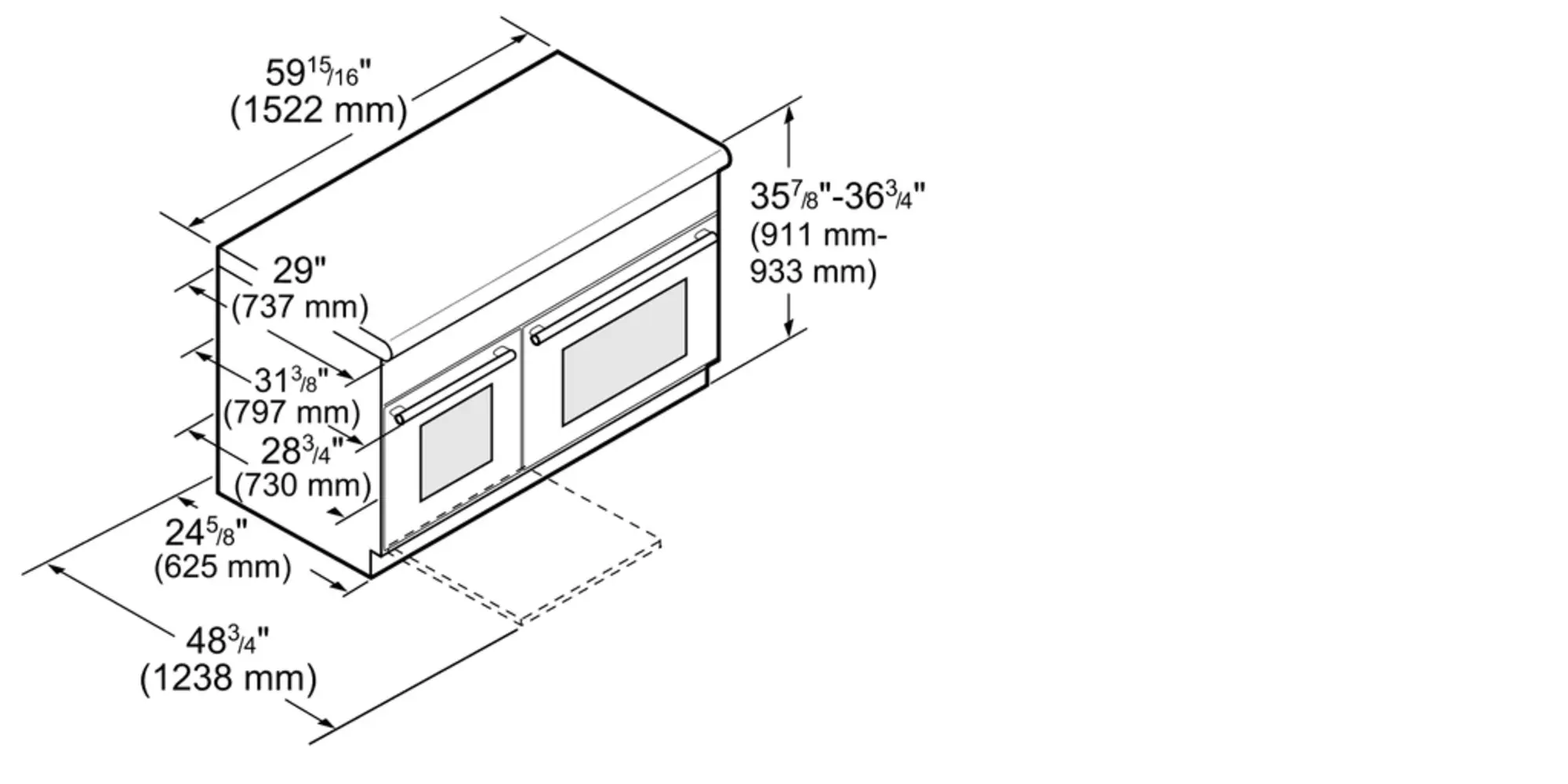 35 7/8'' x 59 15/16'' x 29''