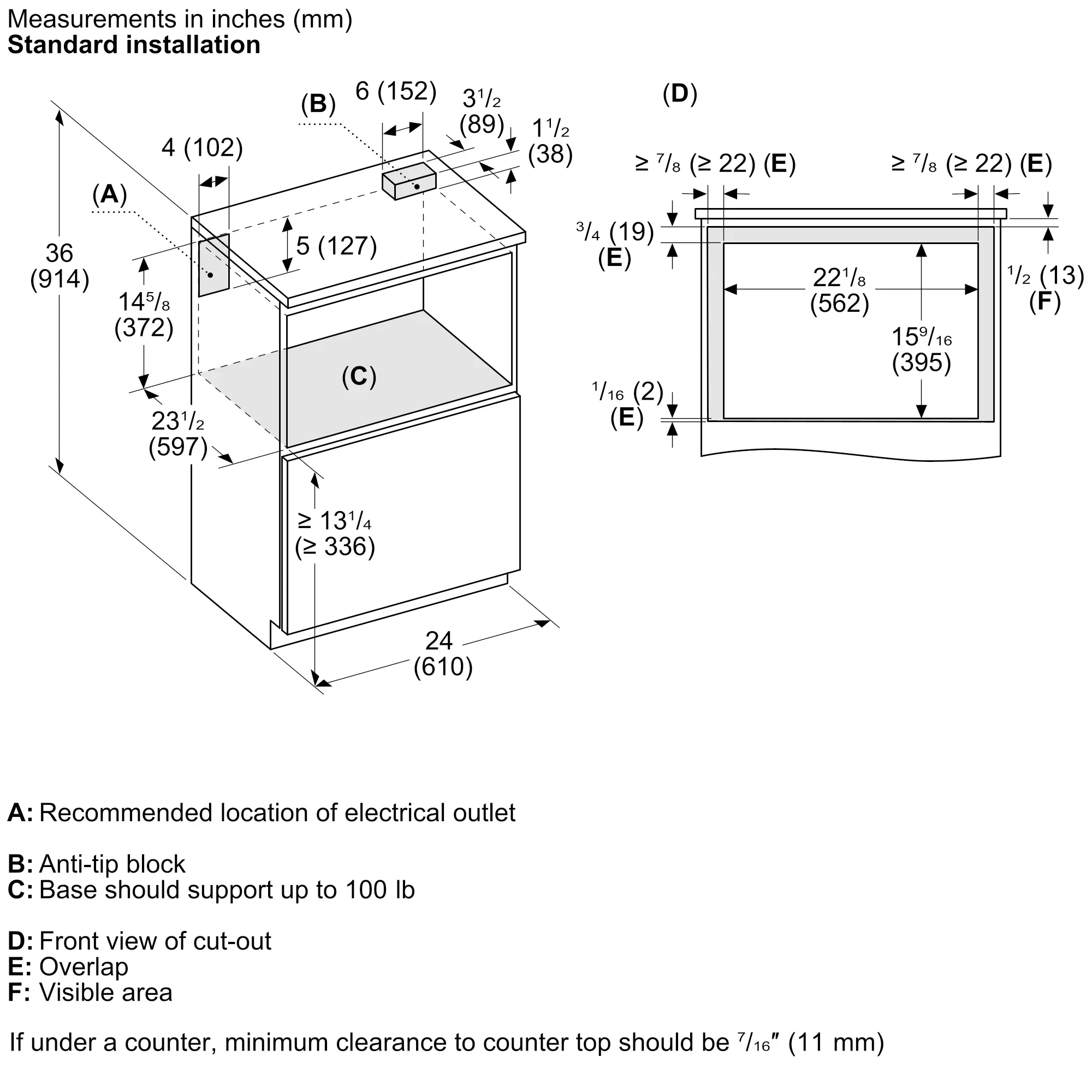 Required Cutout Size (HxWxD) (in)